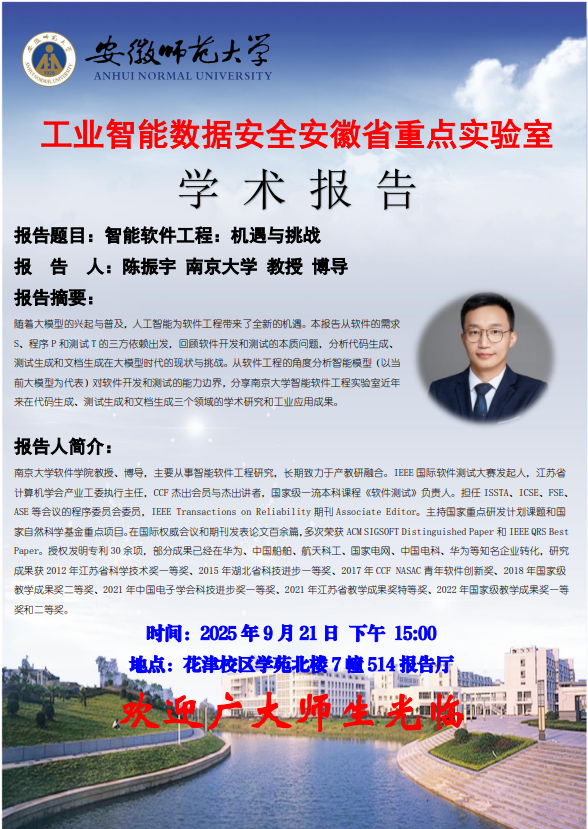 【学术预告】工业智能数据安全安徽省重点实验室学术报告:智能软件工程:机遇与挑战